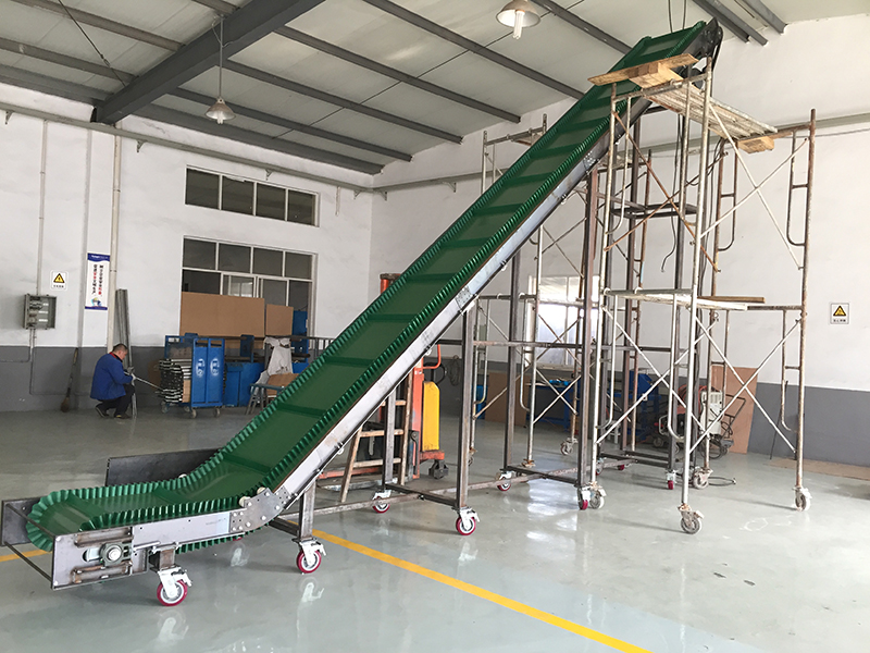 爬坡皮帶輸送機正在調試中
